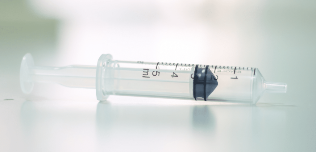 You can buy a syringe from a pharmacy and remove the needle to get the correct dosage, as shown in the photo opposite.